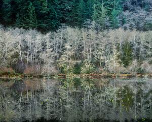 Bare trees reflected in a pond in Northern California.