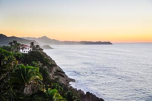 Sunrise on the Pacific Coast of Mexico offers a breathtaking view of blue water and the beautiful Pacific Ocean. This tranquil region in Nayarit is popular for travelers on vacation. With its scenic bay and picturesque shoreline, it feels like paradise.