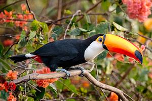 Always active and full of energy, members of the Toucan family are a delight for nature photographers. Pictured here is the Ramphastos toco, the largest toucan species in the world.